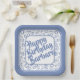 Plato De Papel 60.º patrón de número aleatorio Fiesta azul y blan