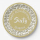 Plato De Papel 60.º patrón de número aleatorio Fiesta oro/blanco