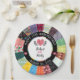 Este plato de papel personalizado presenta un borde de bonito con motivos para parecerse a un tejido de paja cosida y lee Feliz 60 aniversario alrededor de la llanta. Personalizar para una pareja especial incluyendo sus nombres y fecha de boda en el centro. Los corazones rosados y una variedad de coloridos patrones florales, de punto y de rayas añaden un ambiente campestre acogedor.