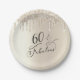Platos de papel para la fiesta de cumpleaños número 60 de Girly y moda con "60 & Fabulous" escrito en elegante y elegante escritura contra un fondo de Relieve metalizado de imitación de oro de champán, con purpurinas de imitación de oro goteando desde la parte superior.