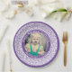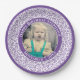 Plato De Papel 60 Patrón de número aleatorio de fotos morado/blan