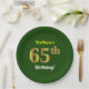 Plato De Papel 65.o cumpleaños del oro verde, falso + Nombre de