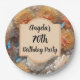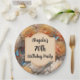 Celebra cualquier edad con un precioso plato de papel de personalizable. Magníficos crisantemos rosas y naranjas con mariposas azules y suntuosas zonas verdes. Un diseño femenino elegante pero bonito.