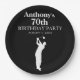 Placa de papel de la fiesta de cumpleaños 70. Golfista blanco y negro, placa de papel. Personalízalo con tus detalles.