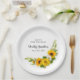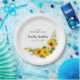 Elegante y elegante girasol amarillo, peonía y margarita blanca con platos de papel personalizado floral. Tres líneas de texto permiten personalizar la decoración de la mesa.