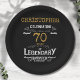 Para los que celebran su 70 cumpleaños, tenemos las comidas ideales para fiestas de cumpleaños con un toque vintage. El fondo negro con un diseño de tipografía blanca y dorada es sencillo y elegante con un toque retro. Personalizar fácilmente el texto de esta placa de cumpleaños utilizando la plantilla proporcionada. Parte de una colección de artículos y regalos de fiesta por 70 años.