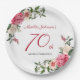 70.º Cumpleaños Placas De Papel Botánico De Floral De Color Blanco Rosa Elegante. Una delicada y femenina floral y botánica invitación a la fiesta de cumpleaños. Tiene hermosas flores con un toque de antigüedad. El diseñador siempre está listo para ayudar, contacta con ella si necesitas ayuda con este diseño haciendo clic en el botón azul del mensaje de abajo!