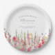 La decoración de la mesa es perfecta para una fiesta de cumpleaños en agosto. El gladiolo rosado es la flor de nacimiento de ese mes. Forma un borde inferior de acuarela de bonito en este plato floral personalizado. El invitado de cumpleaños del honor, su nombre, edad y fecha de nacimiento se colocan encima de él usando una caligrafía y tipografía elegantes. Todo el texto es editable.