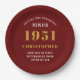 Un diseño de placa de papel rojo clásico personalizado para la celebración de ese cumpleaños para una persona especial nacida en 1951 y que cumple 70 años. Añada el nombre a este estilo retro vintage, blanco y dorado para un regalo de cumpleaños 70 personalizados. Edite fácilmente el nombre y el año con la plantilla proporcionada. Un maravilloso regalo de cumpleaños personalizado. Más regalos y suministros de fiesta para esa celebración del 70 fiesta disponible en la tienda.
