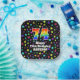 Este alegre y vibrante diseño de placas de papel de cumpleaños presenta un gran número "74" con un patrón inspirado en el gradiente del espectro arcoiris, junto con el mensaje "Feliz cumpleaños 74", y un nombre personalizado. El fondo presenta un interesante y colorido patrón inspirado en el campo de las estrellas. Placas de papel como esta podrían ser usadas en un fiesta realizado en celebración del cumpleaños setenta y cuatro de alguien. [~Z0000582]