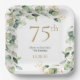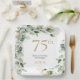 Estos exquisitos eucaliptos acuarelas con adornos de hojas de oro 75º cumpleaños fiesta de 9" platos de papel cuadrado son perfectos para su gran celebración. Su diseño suave y florido es moderno, pero tradicional. Se ven fabulosos en las mesas, en el bufé o en las mesas. Seleccione Personalizar esta plantilla para convertirla de forma única en la suya. En segundos verás tus impresionantes platos de cumpleaños número 75.