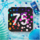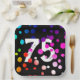 Plato De Papel 75° cumpleaños con puntos arcoiris en negro