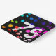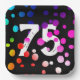 Patrón neon rainbow dot sobre fondo negro para la fiesta de cumpleaños número 75. La edad puede ser editada. Se puede cambiar el color de fondo negro.