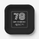 Este estilo vintage, inspirado en el estilo de los años 20-1930, se inspira en el diseño de placas con temática de cumpleaños. Su gran estampado Art Déco es el número "78", el mensaje de bienvenida de cumpleaños "Happy 78th Birthday" y un nombre personalizado. El fondo es negro de color. Las placas de papel con temática de cumpleaños como esta podrían ser una manera divertida de celebrar el cumpleaños setenta y ocho de alguien. [~Z0000581]