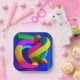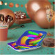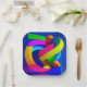 a colorful abstract design covers this 7" square paper plate. This unique design will add color and interest to your party decor!