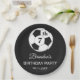 7th Birthday party for a soccer fan, sports, kids, boys, for him. Black and white, modern, elegant Birthday party paper plates. Please personalize it with your details.
