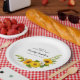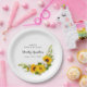 Elegante y elegante girasol amarillo, peonía y margarita blanca con platos de papel personalizado floral. Tres líneas de texto permiten personalizar la decoración de la mesa.