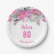 Placas de papel florales de color de agua rosada de 80 años. Personaliza con nombre, edad y texto.