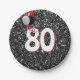 Plato De Papel 80.º globo de cumpleaños sobre Purpurina negro