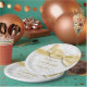Plato De Papel 80.o Damasco del oro del cumpleaños y falso arco