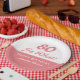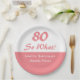 80 Así que qué divertido decir guión rosado 80 de la placa de la fiesta de cumpleaños. Divertidas y inspiradoras placas de papel para la fiesta de cumpleaños número 80 en rosa. Genial para una mujer que tiene sentido del humor. Personaliza las placas con tu nombre y puedes cambiar el número de edad.