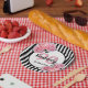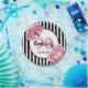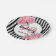Plato De Papel 90 cumpleaños rayas negras flores rosadas clásicas