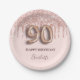 Plato De Papel 90 cumpleaños rosa purpurina oro estilo globo rosa