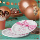 Plato De Papel 90.o Damasco rosado del cumpleaños y falso arco