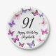 This pretty and whimsical 91st birthday papr plate is perfect for a nice party and will set a fun and celebratory tone. This design features pink and purple butterflies, and is a nice feminine choice for a special event to celebrate a milestone birthday. Customize for your own birthday year, and search for "91" in my shop to see coordinating designs.