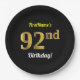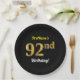 Plato De Papel 92.o cumpleaños del oro negro, falso + Nombre de