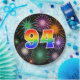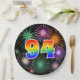 Este colorido, divertido y alegre diseño de placas de papel presenta un gran número de colores "94" con un diseño inspirado en el gradiente del espectro del arco iris. También cuenta con un emocionante y vibrante patrón inspirado en fuegos artificiales de celebración. Tiene un fondo de color negro. Placas de papel divertidas como esta podrían ser usadas en una celebración que se lleva a cabo para observar el cumpleaños noventa y cuatro de alguien, el noventa y cuarto aniversario o algún otro evento de noventa y cuatro. [~Z0000490]