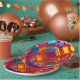 Colorful geometric shapes cover this 9" round paper plate. This unique design will add color and vibrancy to your party decor!