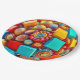 The image of colorful geometric shapes covers the front of this 7" round paper plate. This unique design will add color and vibrancy to your party decor!
