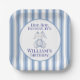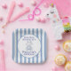 Celebrate your little one’s special day with this adorable bunny-themed design, perfect for a first birthday party. Featuring a plush blue bunny illustration, playful floral accents, and cheerful text that reads “Hop, Hop, Hooray, It’s William’s Birthday!”, this design adds a whimsical touch to any party table. The soft blue and white striped border creates a sweet vintage feel, ideal for baby boys or gender-neutral celebrations. Pair with matching invitations, napkins, and banners for a coordinated party set.