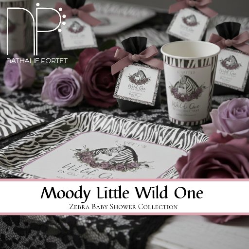 Moody Little Wild One Zebra Baby Shower CollectionDiseñado por Nathalie Portet