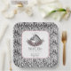 The baby’s name and event date are fully editable at the bottom. These plates are perfect for wild one baby showers, safari girl parties, zebra print celebrations, and lightly gothic baby shower themes.