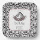 These zebra baby girl shower square paper plates feature “A Little Wild One Is on the Way” with a hand-drawn zebra mama and baby surrounded by mauve and blush roses. A bold black-and-white zebra border with a dark blush frame creates a modern safari look with subtle moody elegance.
