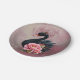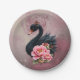 A touch of rose and swan's glow. This enchanting design depicts an elegant black swan, immediately eye-catching with its smooth, dark plumage and bright orange beak. A delicate floral arrangement perches atop its head, emphasizing its regal grace. Delicate pink blossoms, presumably peonies, are artfully grouped around the swan's body, lending the image a romantic and elegant touch. The background consists of a gentle gradient in shades of pink, immersing the scene in a dreamy, almost magical atmosphere. The interplay of the jet-black feathers, the vibrant flowers, and the soft gradient creates a harmonious overall image full of grace and love.