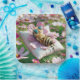 Una abeja de miel se relaja sobre una almohada hecha de pétalos, con elegantes gafas de sol entre un campo de flores florecientes