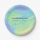 Este diseño de placa de papel presenta un diseño de celebración de recién nacido con un giro colorido de morado, melocotón, verde y azul. Rellene los campos de la plantilla de información personal, elimine texto y/o haga clic en personalizar para seleccionar un color de tipo, tamaño y estilo que prefiera.