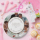 Design muestra la imagen del famoso cuadro de acción de gracias del artista Norman Rockwell como fondo. Su texto aparece en un elegante texto marrón sobre un fondo circular blanco. Todo el texto es personalizable.