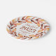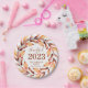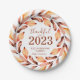 Elegante y elegante fiesta de agradecimiento personalizado. Celebra el día de gracias con estilo con este plato de papel de moda. Características de diseño "agradecidos por el 2023" en una tipografía de escritura elegante sobre un fondo blanco limpio rodeado de coloridas hojas de otoño. Personalice este producto agregando el nombre de la familia o el texto de su personalizado. Fácil de personalizar. ¡Feliz Día de Acción de Gracias!