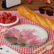 Plato De Papel Acercamiento de los arvejas dulces rosados