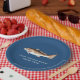 Personalice su acontecimiento de la pesca con estas placas de papel que ofrecen un salmón artístico (tambor rojo). Añada su texto y elija su color de fondo.