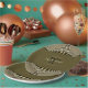 Esenciales de mesa de eventos especiales: verde oliva de Khaki con platos de papel de diseño en color beige dorado y negro delicado y decorativo. Todo el texto es personalizable. Diseños personalizados por webgrrl.art