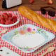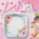 Hermoso diseño acuarela floral sobre una placa de papel, perfecto para añadir encanto a cualquier reunión o evento.