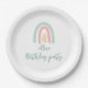 Plato De Papel Acuarela arcoiris minicadena amarillo Cumpleaños