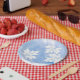 Plato De Papel Acuarela azul y hojas de arce modernas