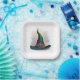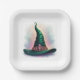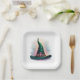 Plato de papel de fiesta de cumpleaños, con un elegante gorra de brujas verde adornado con brillantes joyas rosas y una caprichosa corona. Ideal para los amantes de la fantasía musical y de las celebraciones encantadas, este diseño impresiona.