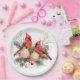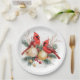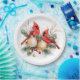 Plato De Papel Acuarela Feliz Navidad Cardenal Rojo y Berries